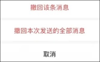 之前执行撤回操作时,会弹出“撤回该条消息?”的弹窗,需点击“撤回”才能完成操作。由于每次只能撤回一条消息,一旦出现一次性发错多条消息的情况,就会陷入麻烦。